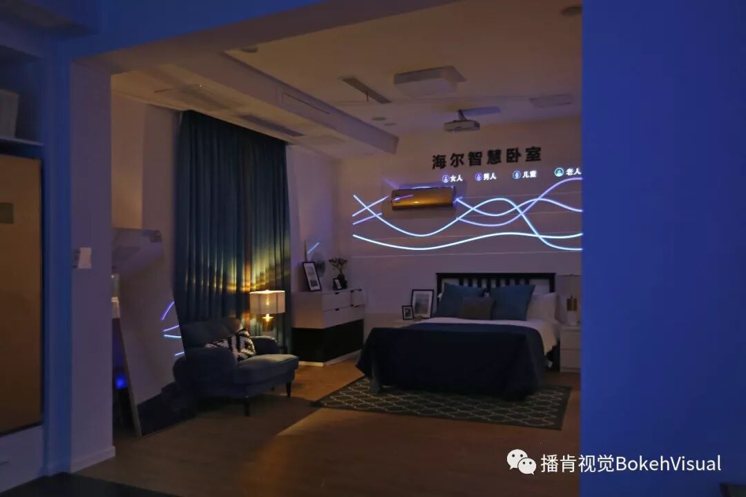 借助生动的投影画面,围绕全屋空气的自动管理,描摹出一个看得见健康空气的智慧卧室。