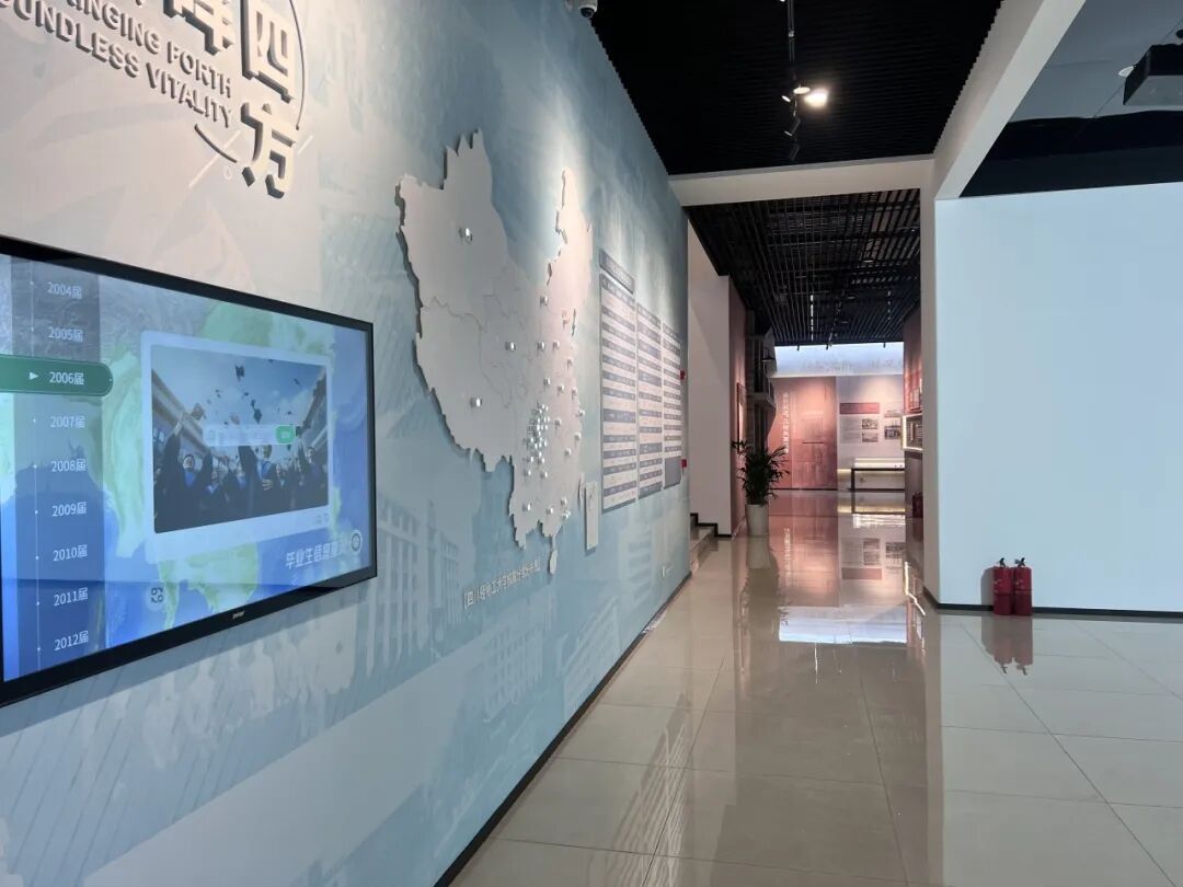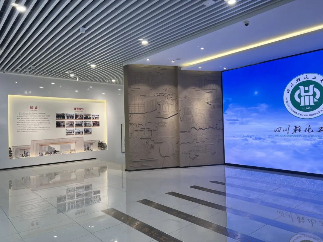 序厅以一条3分钟的形象片,带领观展者走进川轻化,感受学校的发展底蕴与活力。