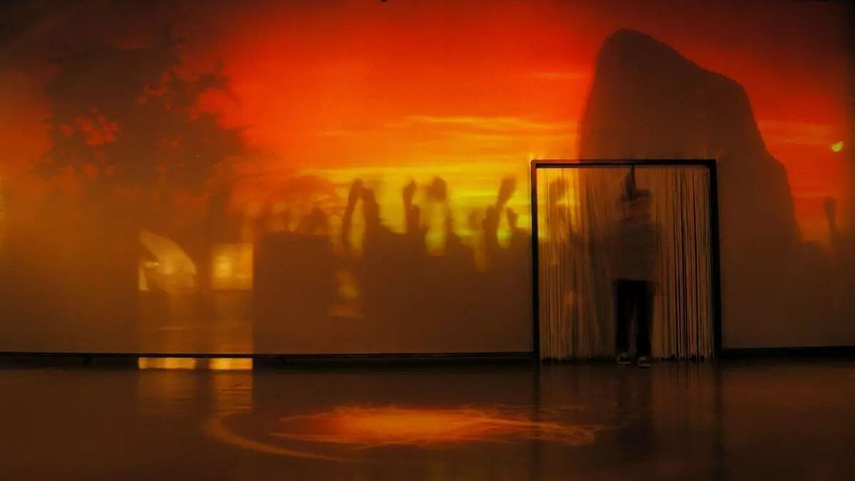 前面都是物质层面上的展示,这里将对整个展览进行一次精神上的升华,因此,展厅设计的比较虚幻和空灵。我们根据视频影象艺术的特点,通过一个巨幅纱幕投影,将虚幻、飘渺的影像呈现在展厅里。似有似无的虚幻影像与展厅后面空灵的展示空间相叠加,观众甚至可以从影像中穿行,穿梭于现实和虚幻之间,穿过虚幻的纱幕影象,眼前豁然开朗,三个直通天地的玻璃展柜中展示着三件重要文物,独特的展柜形式昭示着先民与天与地沟通的心灵世界。简约至极的展示空间把关于先民精神世界的思考更多的留给观众。这也正符合了“少就是多的”艺术规律。远处“地缝”中展示不同的墓葬。整个展区的效果,空灵且立体,实现了展览参观的立体化。