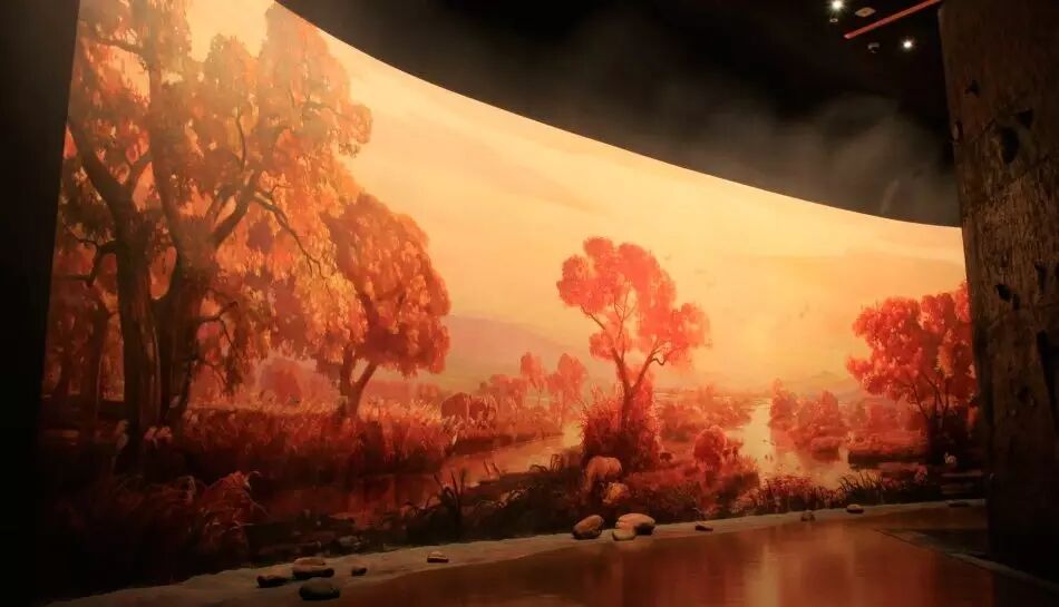 近距离参观方式的巨副油画,使观众一步一景看不到边际,最终形成一个连续的画面感受,仿佛真的走进了一个远古世界。