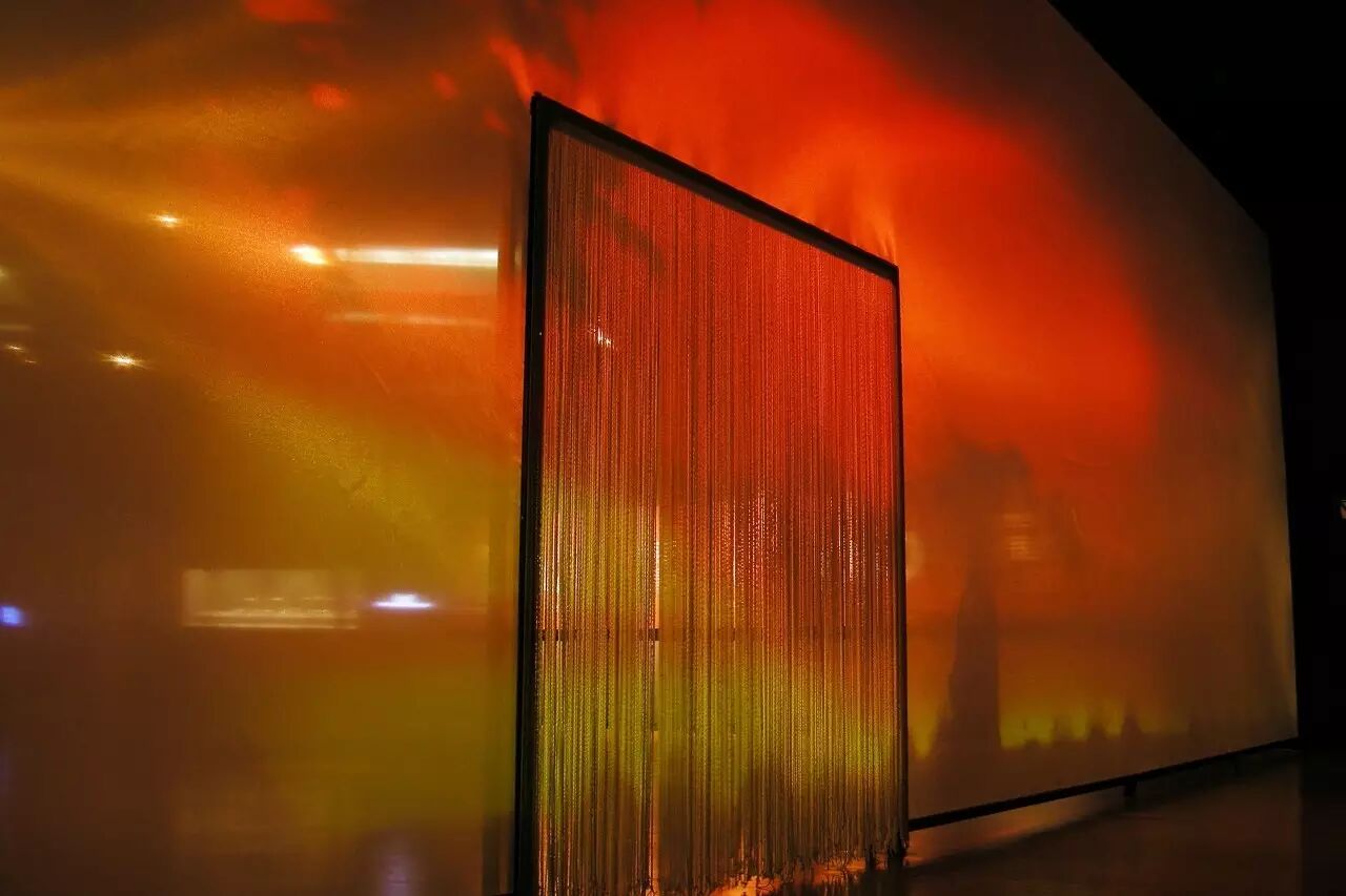 文物与视频叠加展示的手法,集中体现了展示手法上的虚实关系处理。前面静止的文物和后面动态的视频,二者动与静、虚与实的结合,为博物馆这个空间与时间的艺术命题作出了直观的诠释。