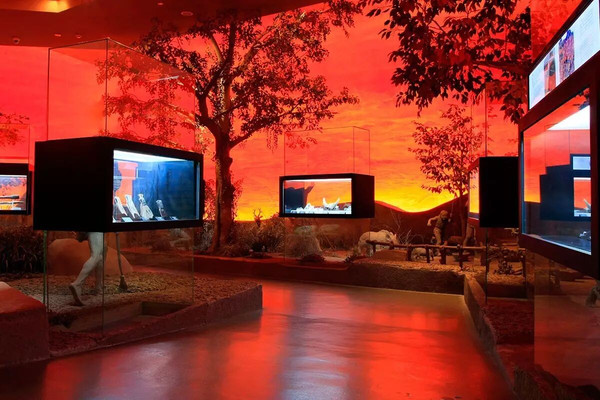 单色雕塑的场景塑造、独特的色彩氛围、写意绘画的环境渲染这是博物馆场景复原前所未有的形式探索。观众在走进这一展区之前就已经被这一强烈的视觉“磁场”所吸引。