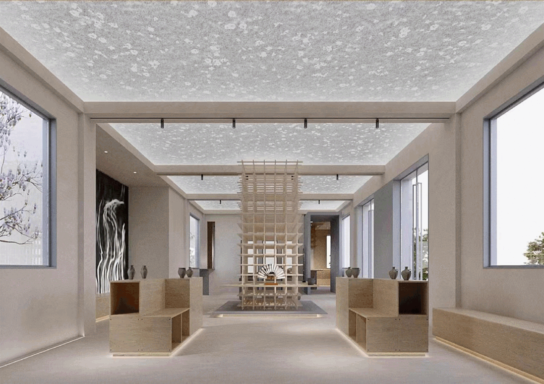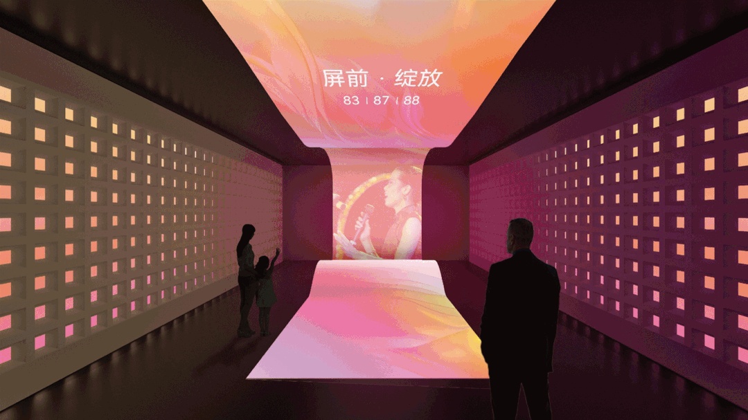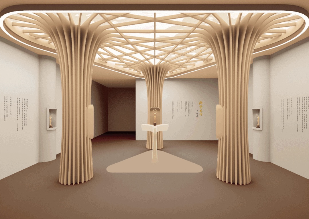 第一部分:参观者步入形如“人生之幕”的艺术馆大门,进入序厅。序厅营造如同《桃花源记》中所述“山有小口,仿佛若有光”的引人入胜感。