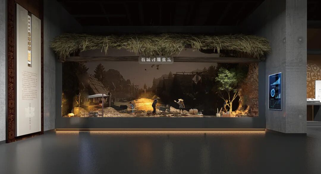 在夏、商或者是西周早期,居住在凌源地域之内的先民,创造了夏家店下层文化,他的文化遗存分布密集、文化特征显著。以半景画的设计形式,立体鲜活的反映夏家店下层文化石城村落生活、农耕、制陶和石器制作场景。侧方触摸一体机,增加展览趣味性的同时,观众可更直观深入了解文化内涵。