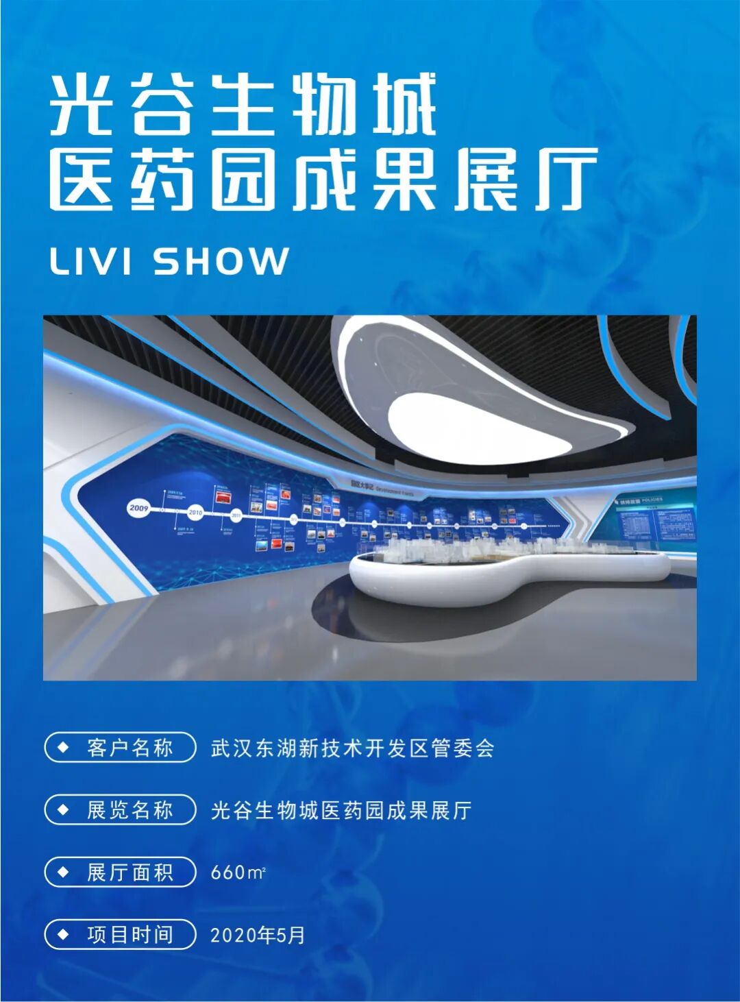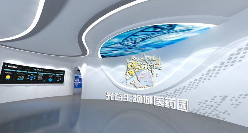 励维展示在和武汉东湖新技术开发区管委会屡次沟通项目后,经过对项目的详尽背调和深入思考后,拟出以“光爱生命 引领健康”为展厅主题,从“健康起源”、“发展优势”、“园区规划”、“丰硕成果”、“未来宏图”五个展区来完整讲述武汉生物城医药园的硕果累累。