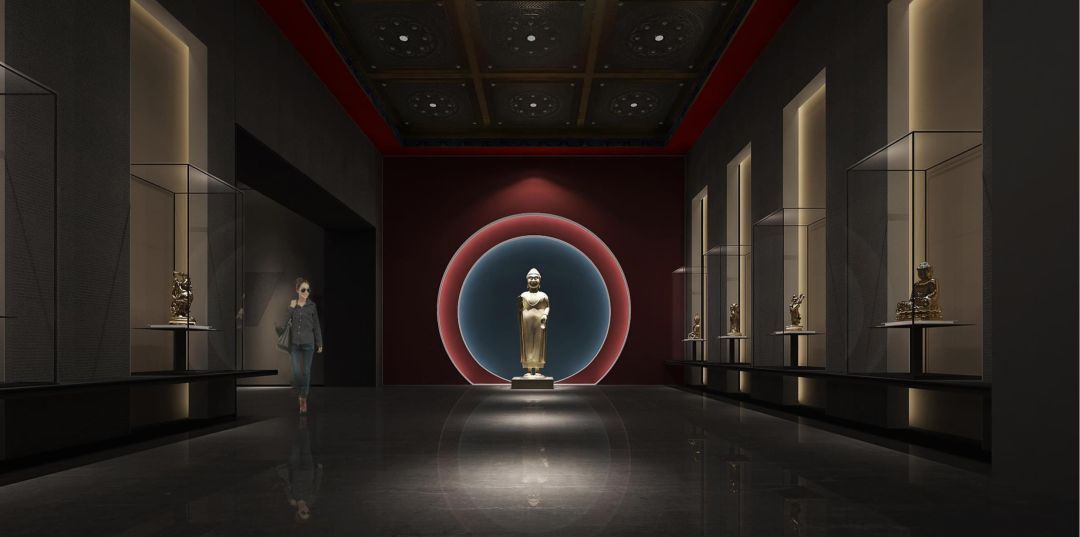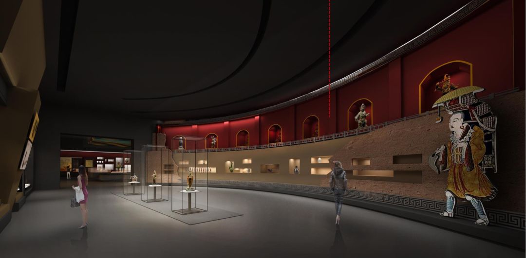 宗教文化石窟墙灵感来源于始建于贞观年间的陕西彬县大佛寺石窟,将唐代陕西石窟艺术的特色与唐朝繁荣的宗教文化相结合,呈现令人耳目一新,恢弘大气的效果。