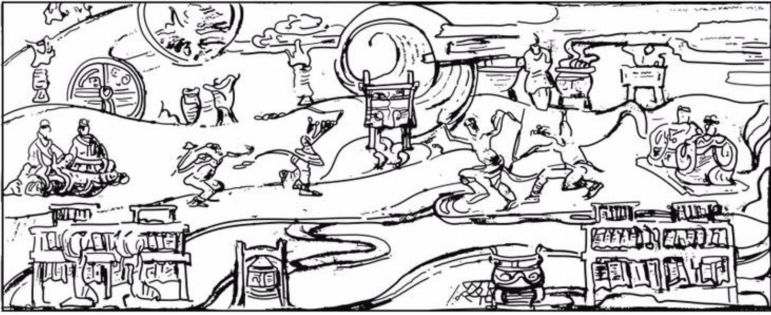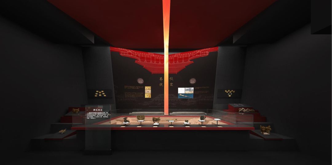 结合浮雕墙与多媒体影像,动静结合,展现西周王朝礼乐制度与民众生活,编钟乐声响起,乐伶起舞,工匠劳作,贵族主持飨宴与祭祀,仿佛在观众面前展开一幅西周全景画卷。