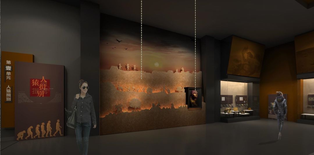 将猿进化成人的过程以透叠方式展现,观众从不同阶段的猿-人形态中了解到人类是如何一步步走向一个智慧种族。