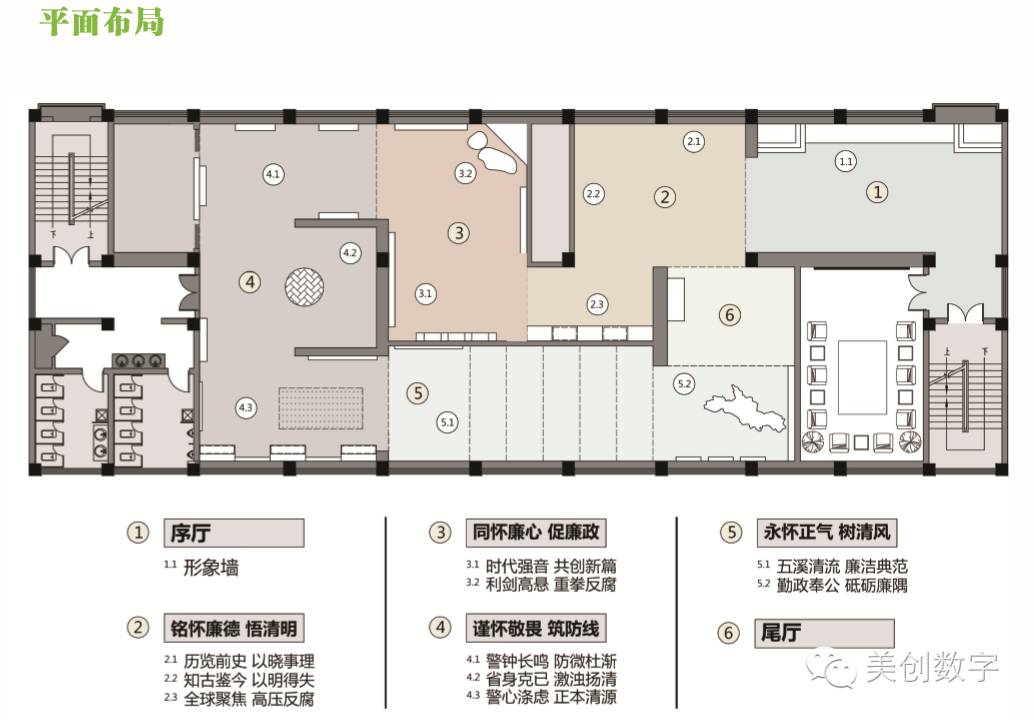 展馆共分为六部分,平面布局如下: