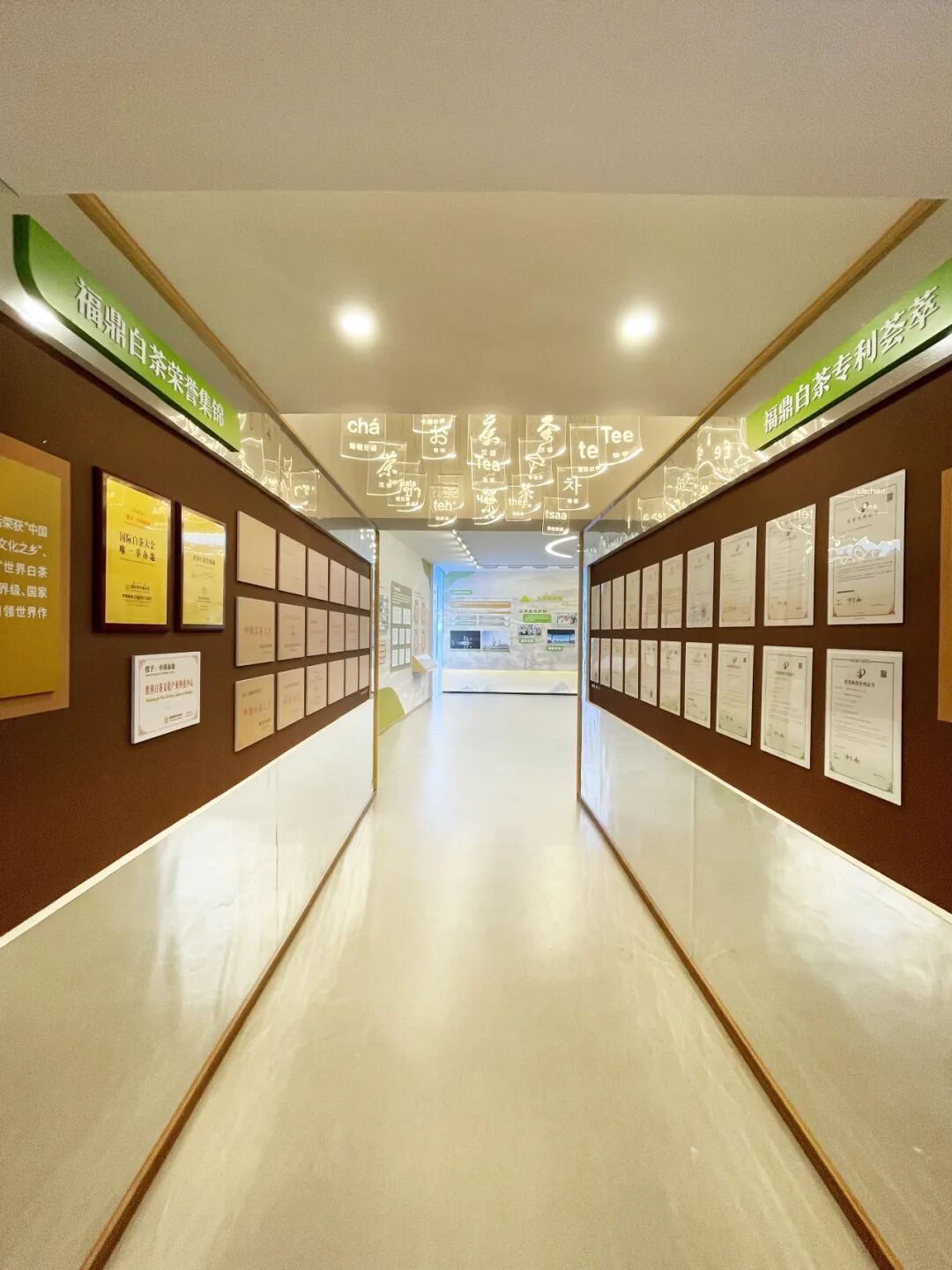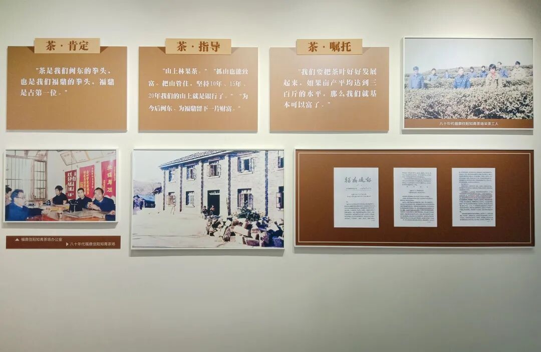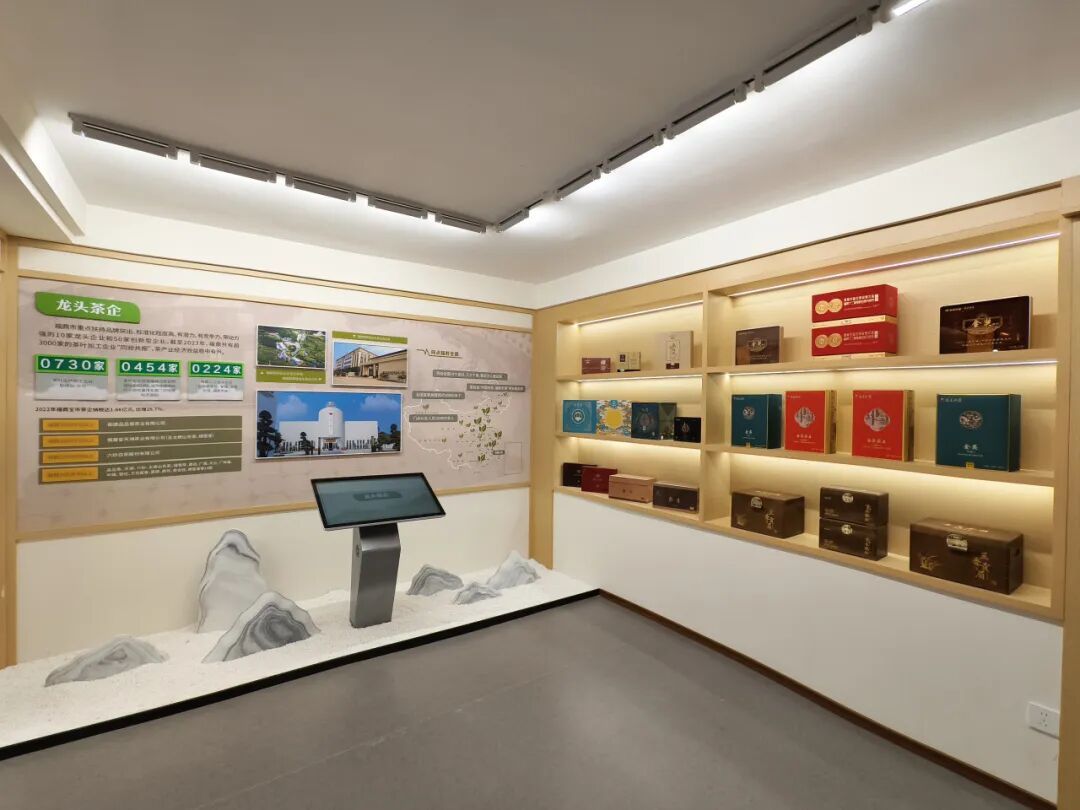 展厅分为“山上银行”、“三茶统筹”、“走向未来”三个篇章,讲述福鼎白茶的起源与发展,展示“三茶”统筹的生动实践。