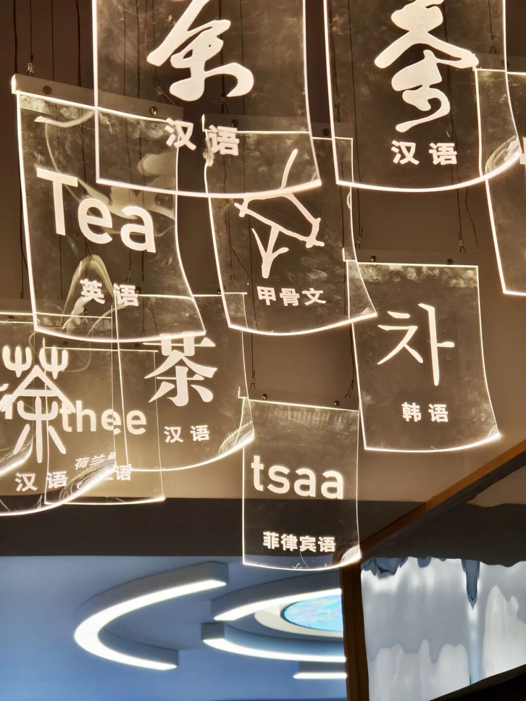 第三展厅顶部是地球仪造型的一幅世界地图,该展厅以“白茶新愿景”“白茶新高度”“白茶新生活”三个单元,展示福鼎白茶发展的蓬勃力量。策展团队融合福鼎白茶“飞天”、远航北极、积极参与“一带一路”等元素,展示了产业“加速跑”走向世界,深化茶文化交融互鉴,共品茶香茶韵,共享美好生活。