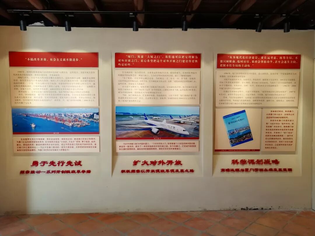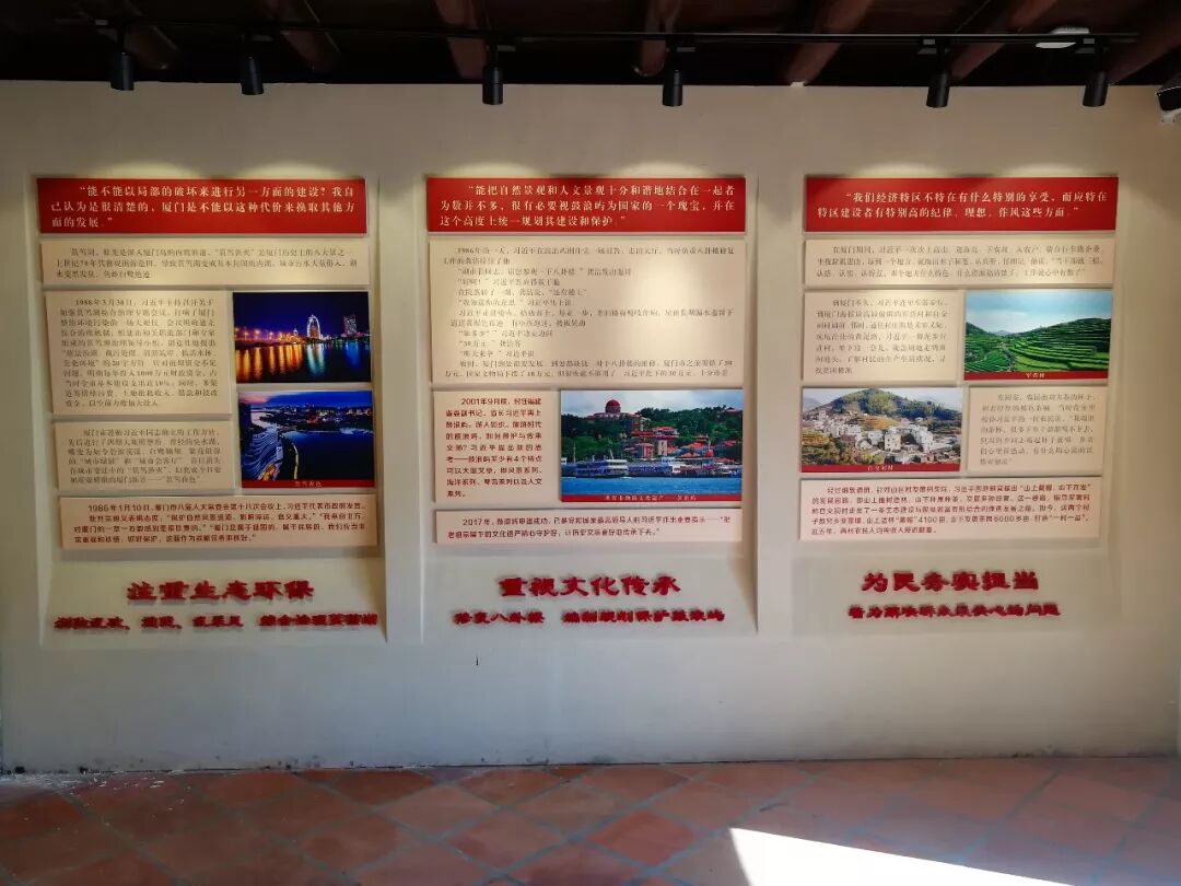 进入展厅,居中展示着习近平同志担任浙江省委书记期间,接受厦门记者采访所说的一段对厦门饱含深情的话: