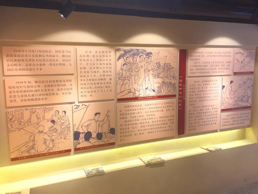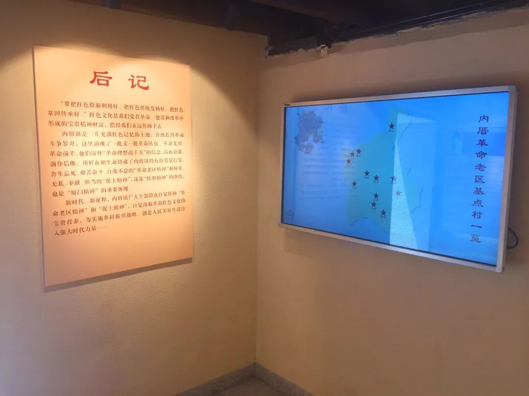 从这个门进去走到里面这间展馆,这里主要展示“内厝革命老区史迹”和“革命老区英雄谱”两部分内容。