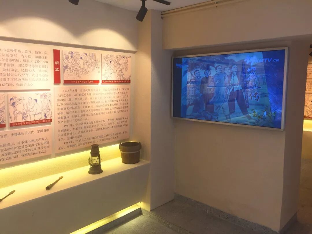 这面墙上有台一体机,播放的是视频纪录片《英勇的锄山抗日民族解放先锋队》,从这四五分钟的音像画面里,大家也能直观感受到锄山抗日民族解放先锋队的英雄事迹和斗争历程。