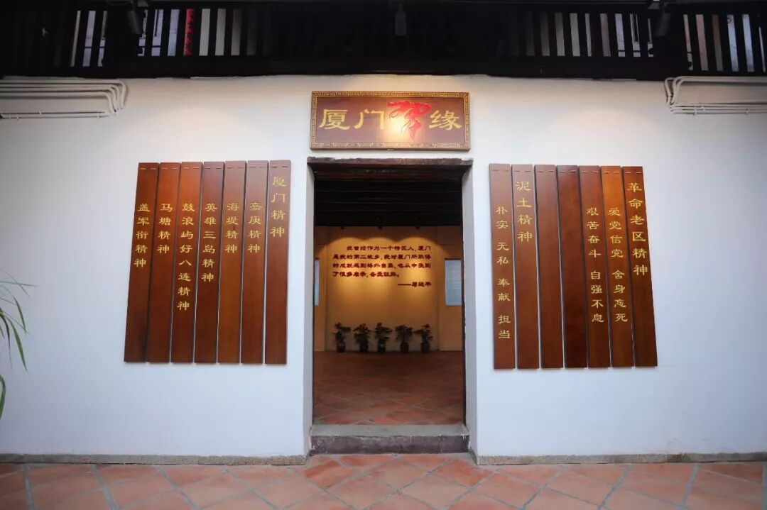 走到“厦门习缘”展厅门口,两侧的木板上整齐地写着:厦门精神,包括嘉庚精神、海堤精神、英雄三岛精神、鼓浪屿好八连精神、马塘精神和盖军衔精神;革命老区精神,其精神内涵是爱党信党、舍身忘死、艰苦奋斗、自强不息;还有内厝籍著名诗人鲁藜,所作的诗《泥土》衍生出的“泥土精神”,朴实、无私、奉献、担当是它的内涵。