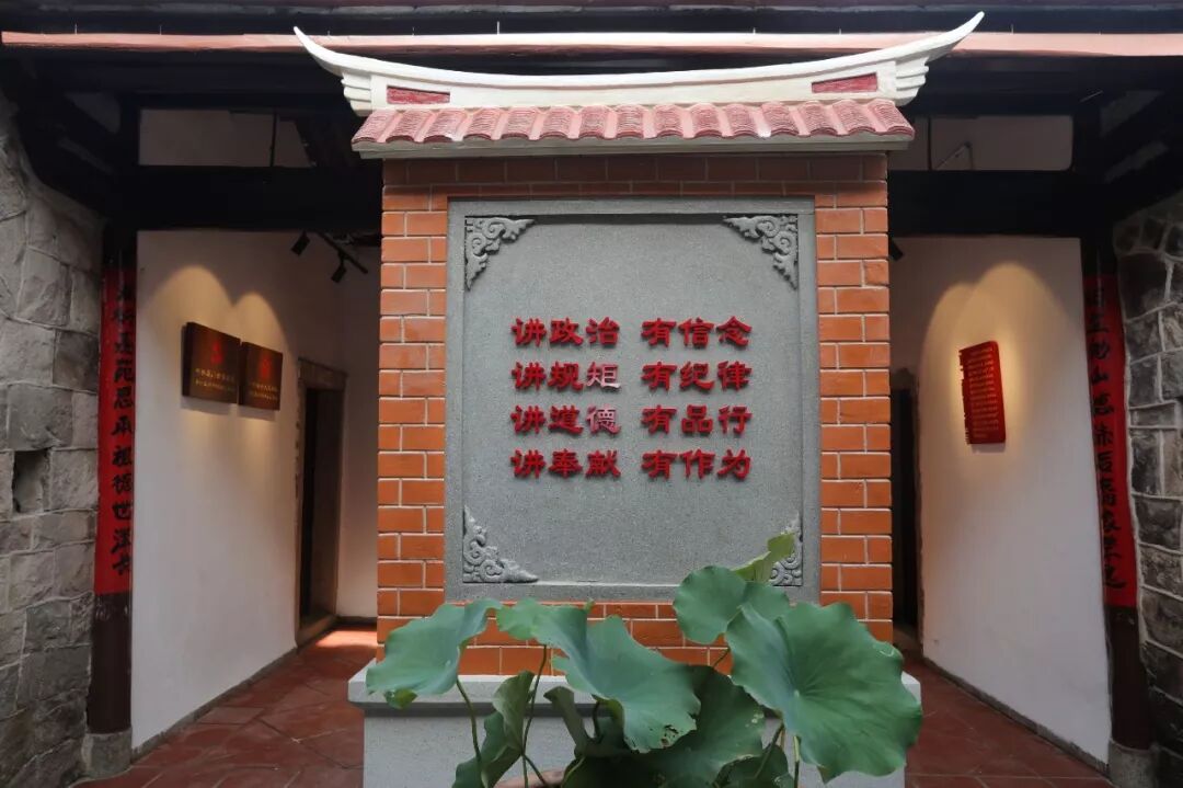 照壁背面,强调的是“讲政治 有信念;讲规矩 有纪律;讲道德 有品行;讲奉献 有作为”等“四讲四有”内容。