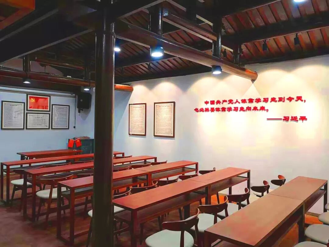 从史迹馆出来,经过隔壁的“地下抗日武装斗争旧址”——竹篙楼,再走一段路,就来到锄山乡村党校大礼堂。这里已成为“上山下乡”党员重温入党誓词、开展党性教育、观看主题教育片、进行党的知识培训、开展座谈交流等活动的重要场所。