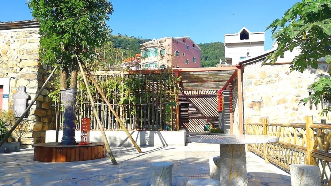 从讲习堂(二)的这侧门出来,这里配有石凳石桌等,可供党校学员、村民、游客等在此泡茶、聊天、休闲之用。