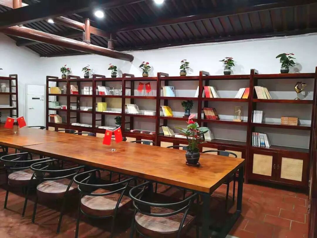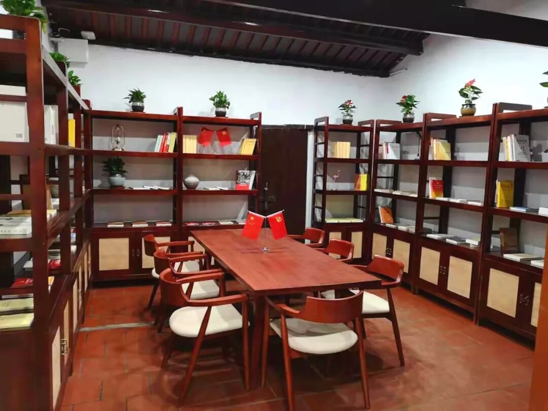 这个房间作为锄山乡村党校的图书室,书架上摆放着各种习近平新时代中国特色社会主义思想读本、红色经典读本、传统文化读本等,供学员们在此阅读、学习、探讨。