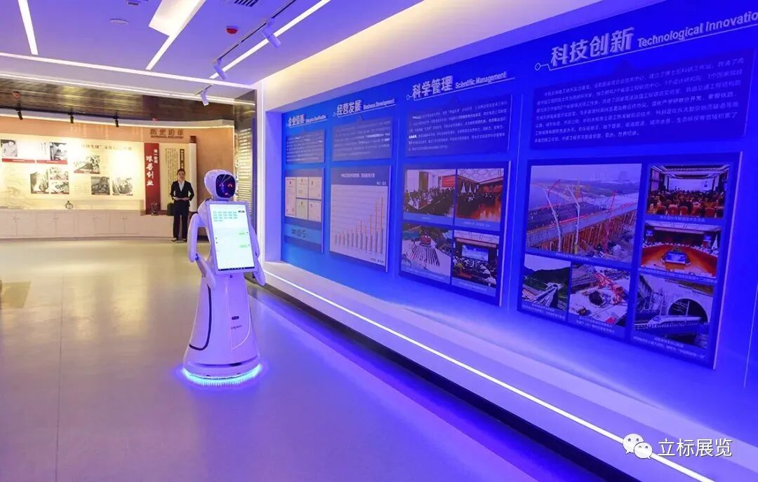 主要展示了企业荣誉、综合实力、业务领域三大板块内容,通过智能机器人讲解、信息化远程智能交互系统、双屏互动、桥隧路基施工沙盘、盾构机模型、平面展板、触摸视频等多种形式,呈现了中铁五局企业管理、经营开发、项目管理、科学发展的辉煌业绩,给参观者带来全新体验。