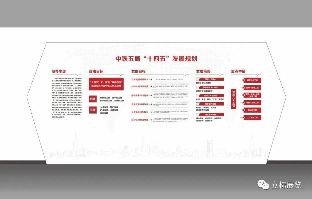 中铁五局文化馆,是文化的体验馆,报国的成就馆,精神的典藏馆,英雄的情怀馆。立标展览从中国中铁“开路先锋”精神中深刻认识到,在展陈行业且阻且长的道路上,不忘初心,勇担使命,努力打造出一座座令客户满意的展馆。