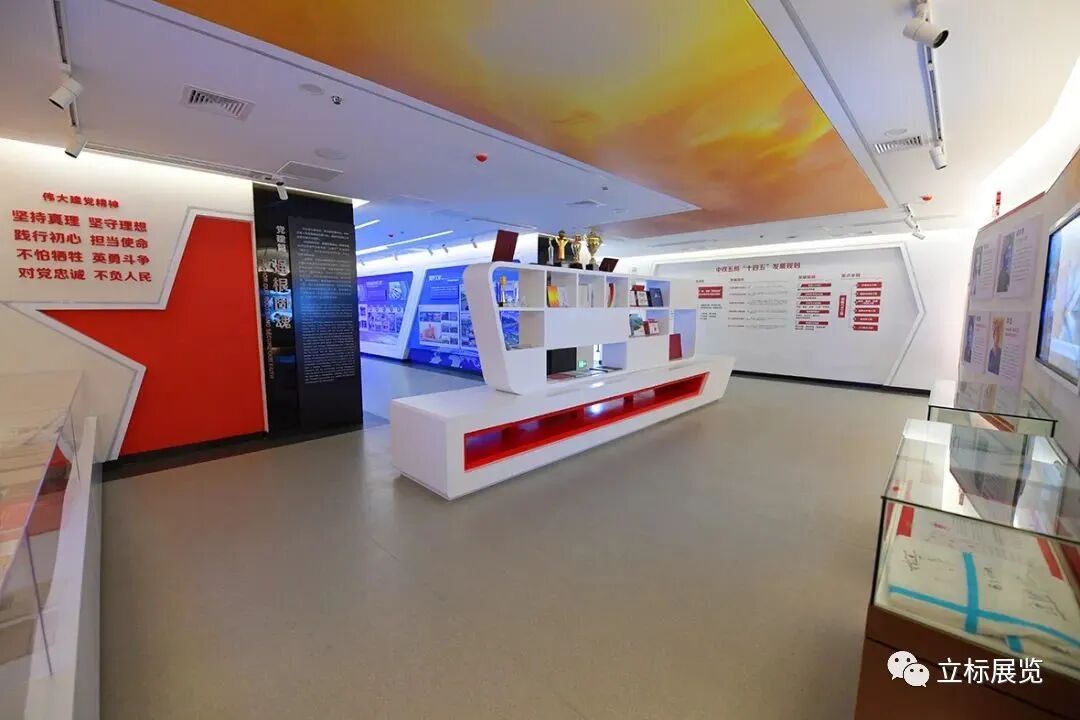 主要展示了中铁五局政治引领、从严治党、群团活动、社会责任、先进楷模等五个方面的内容。厅内还设置了航船模型展台、抗疫物件展柜、“半条被子”物件展柜等。