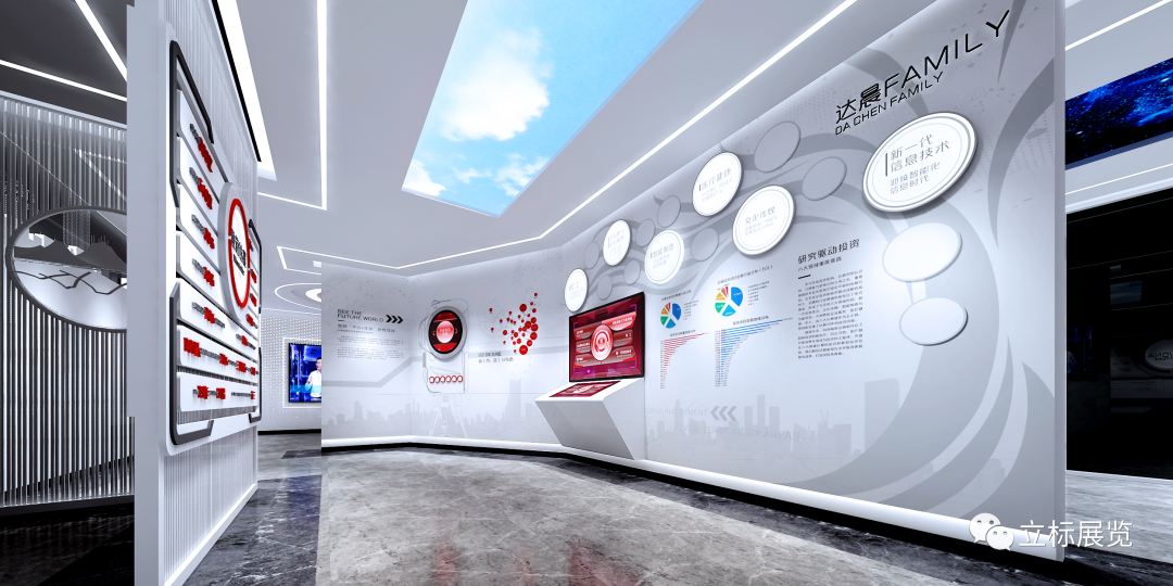 以达晨六大投资领域为主要内容,以达晨财富树为设计概念,根据业主个性化需求塑造创意造型,图板和触控屏融合设计。