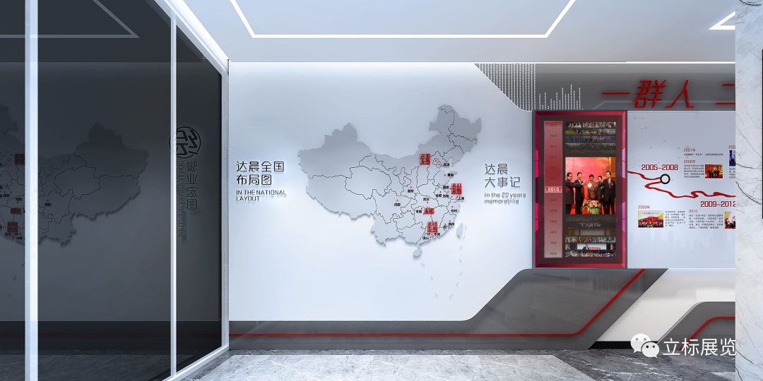 在“达晨全国布局图”展示上,我们通过平面地图立体化,图文和壁挂模型结合,呈现达晨全国战略布局。