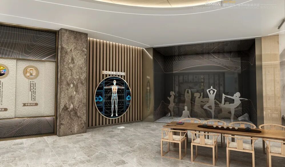 本案在展陈设计上,既包含图文、实物、影音视频、沙盘等传统形式,也借助动态体感交互、雷达感应系统、机械联动技术、芯片体感交互、互动推拉数字滑轨等新兴科技形式,营造出一个高互动性、体验感的综合场馆,激发各类游客观展欲望和探索的情绪,通过这样自主、自发的探索行为,认知康养文化,探索新天地。