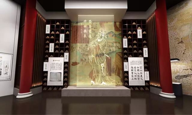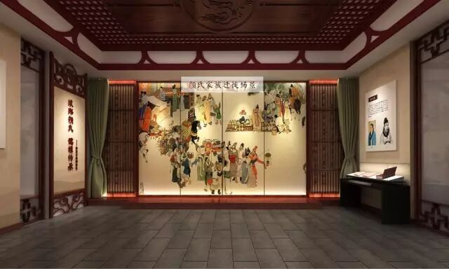 翰墨堂入口处。以颜氏家族迁徙来费县的画面场景为引,追溯颜氏家族和颜真卿与费县的历史渊源。