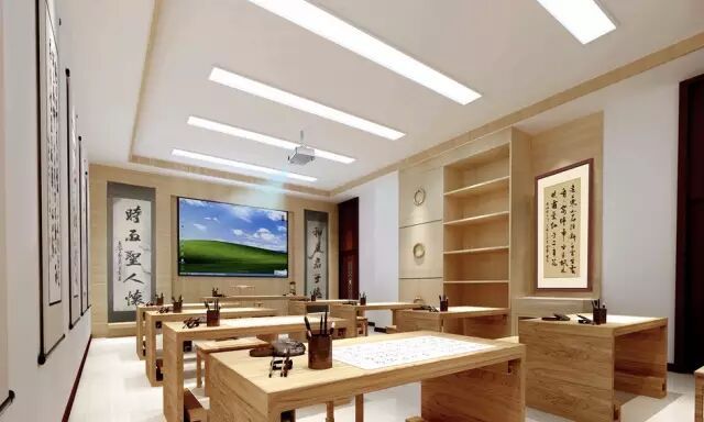 鲁公书院的书法活动室作为公共空间,从分考虑实用性,配置多媒体投影和讲台,满足书法授课、交流活动等不同功能需求。