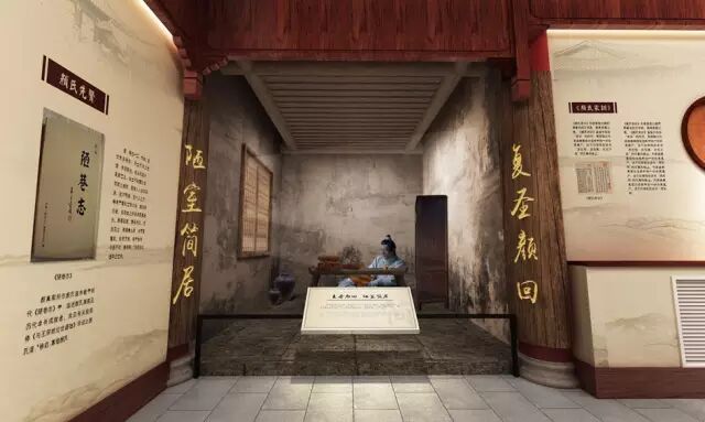 场景再现“颜回陋室简居”,展示颜回安贫乐道、注重精神满足的品质,给予当代人以教育意义。