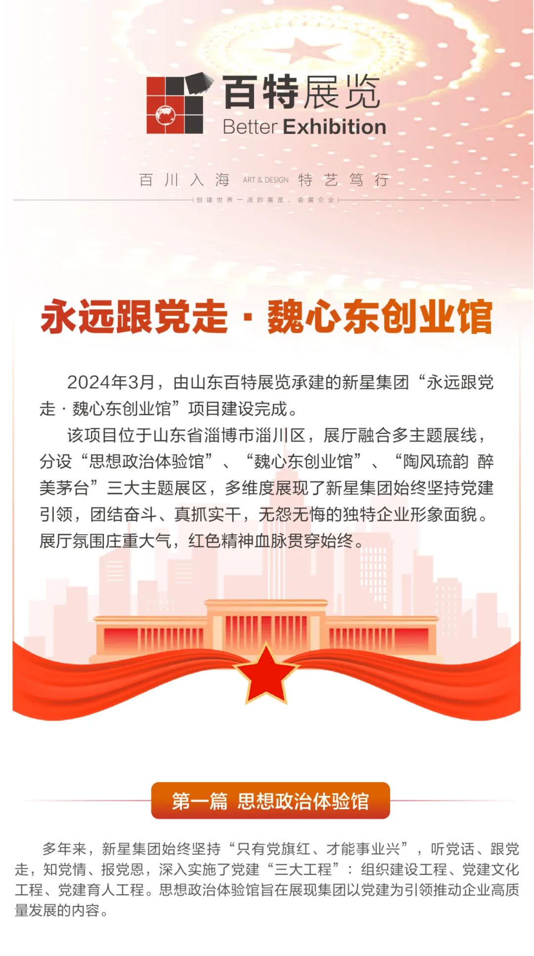 新星集团魏心东创业馆设计效果图:三大展区展现党建引领