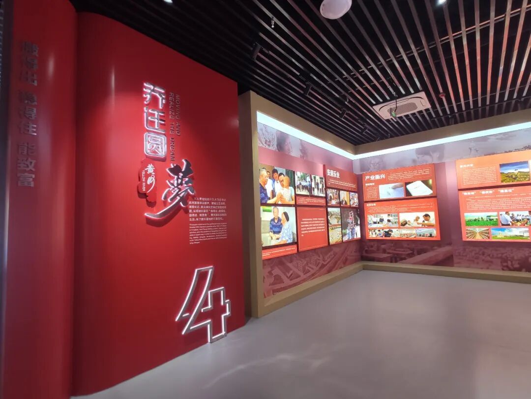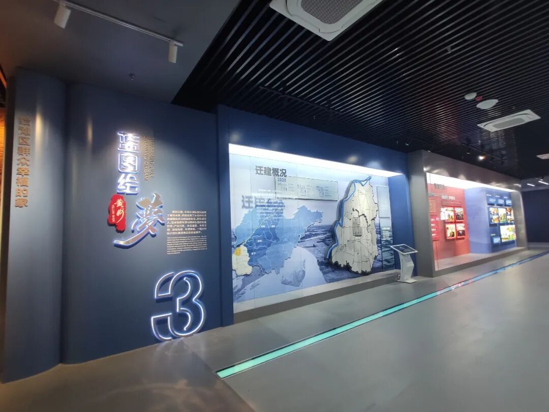 为高质量、多功能体现鄄城黄河滩区迁建展览馆的展示、研究、教育和传承等功能,山东百特展览进行了长期且充分的沟通,细化业主需求,强化创新思维,着眼大局,精心设计,以“中国梦”为主题串联起“治黄逐梦、同心追梦、蓝图绘梦、乔迁圆梦”四篇章,在展现鄄城县黄河滩区迁建,反映黄河滩区迁建工程巨大成就的同时,完美融合黄河文化和刘邓大军渡黄河等红色文化。