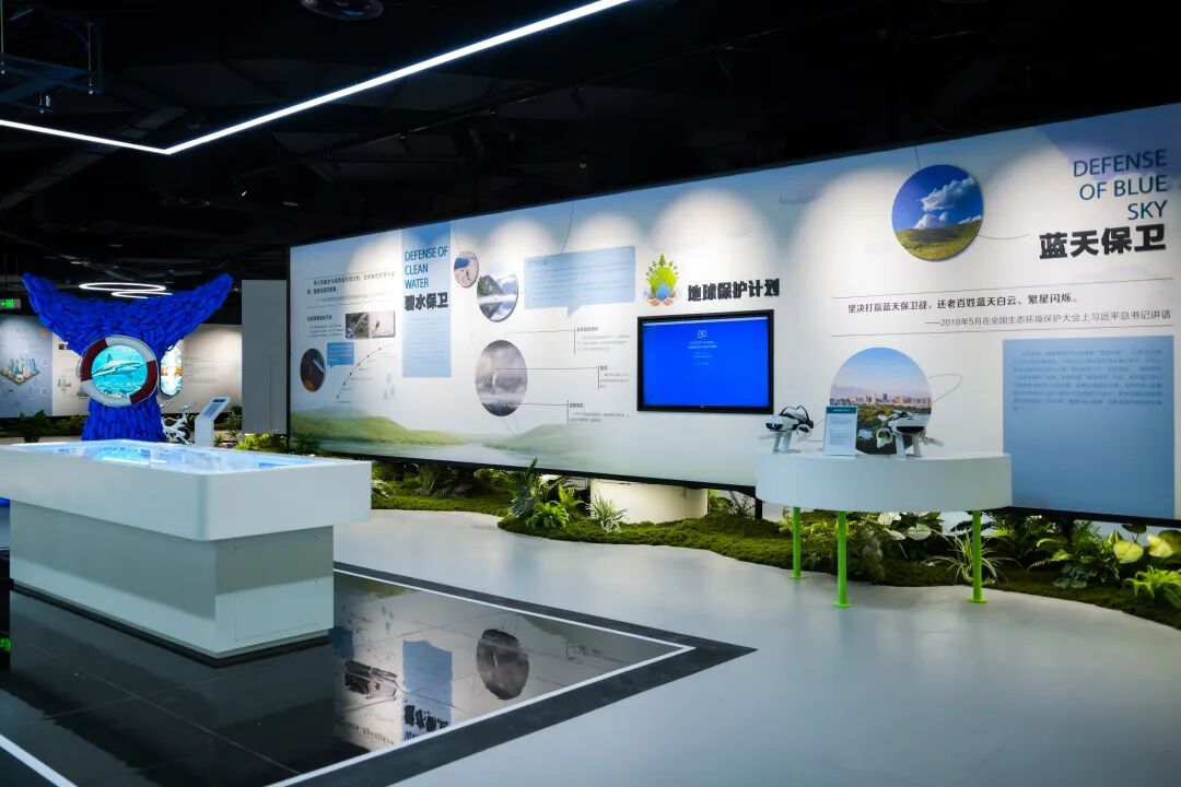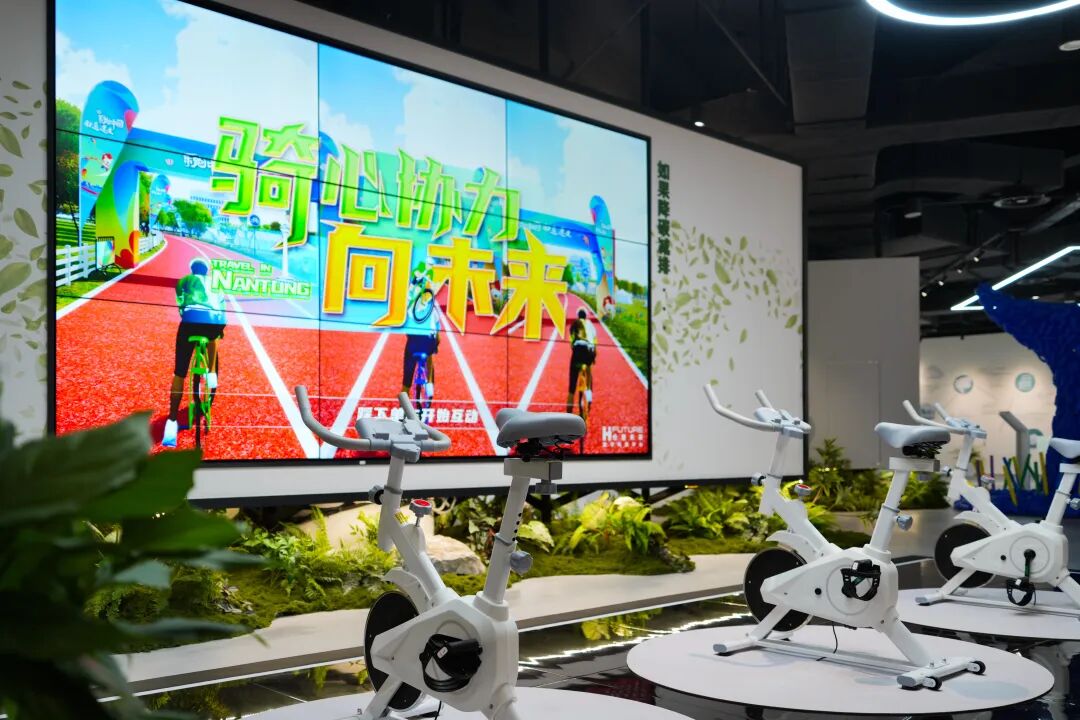 打破传统科普空间局限,创新运用智能机械联动屏、光影艺术装置、历史幻灯放映机、VR生态互动、趣味互动骑行等趣味前沿科技手段,将南通生态文明建设的成果转化为沉浸式艺术体验场景,构建一个“可触摸的生态文明美学体验场”。