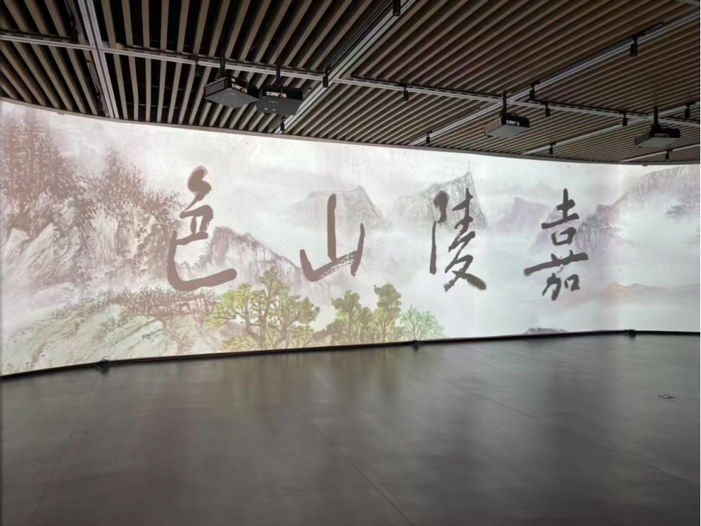以吴一峰生涯巨作《嘉陵山色》进行数字化艺术创作,打造《吴一峰的艺术世界》180°环幕沉浸式影院,让参观者在如画如梦的吴一峰画作中身临其境体验嘉陵的秀美山色。