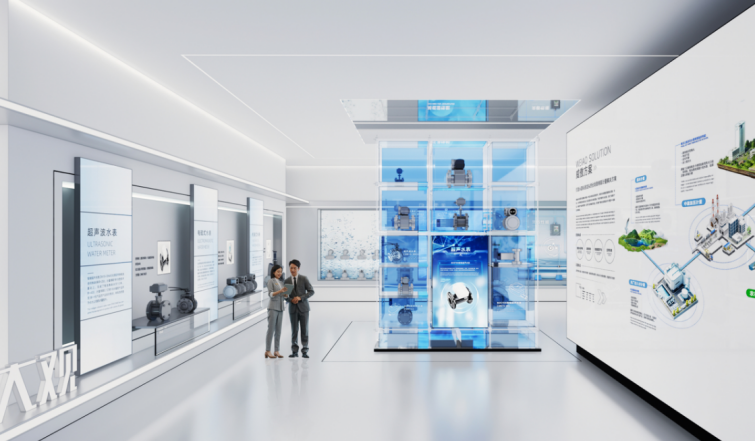 - 威派格智慧水务展厅设计效果图:数字科技演绎五位一体战略