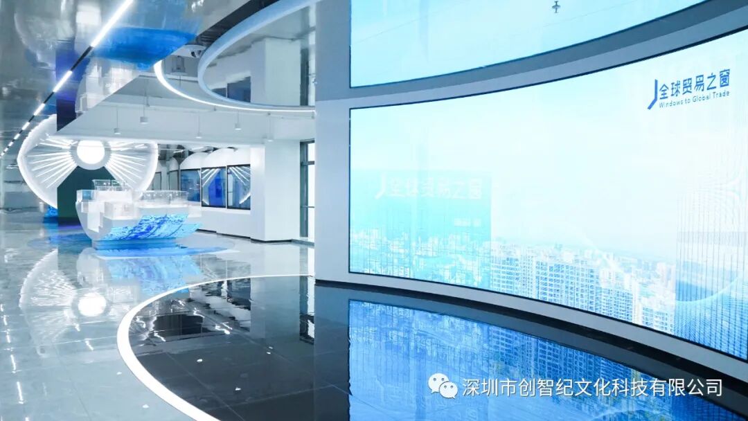 “贸易之窗,连接全球”主题三维影片,以货物运输为线索,利用“窗”的穿梭转场,突出中国最高水平的开放政策、最大的自由贸易试验区。