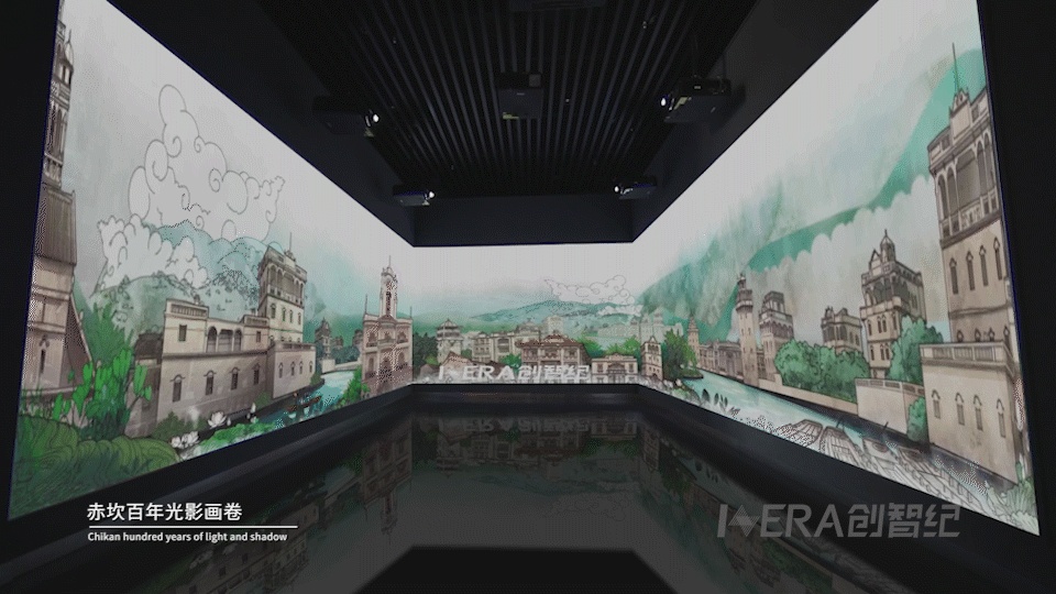在赤坎的古街上,骑楼无处不在。周围乡村则遍布着世界文化遗产碉楼建筑。创智纪以数字化手段构建一个赤坎百年的沉浸式艺术空间,浓郁民国风情和中魂西表的建筑风貌,穿越时光,三面光影变幻回味百年赤坎风情,从而更深刻的理解赤坎的内涵和特质。