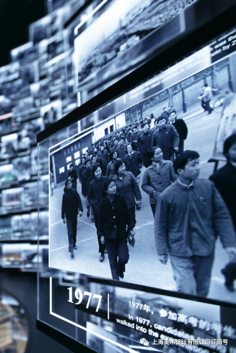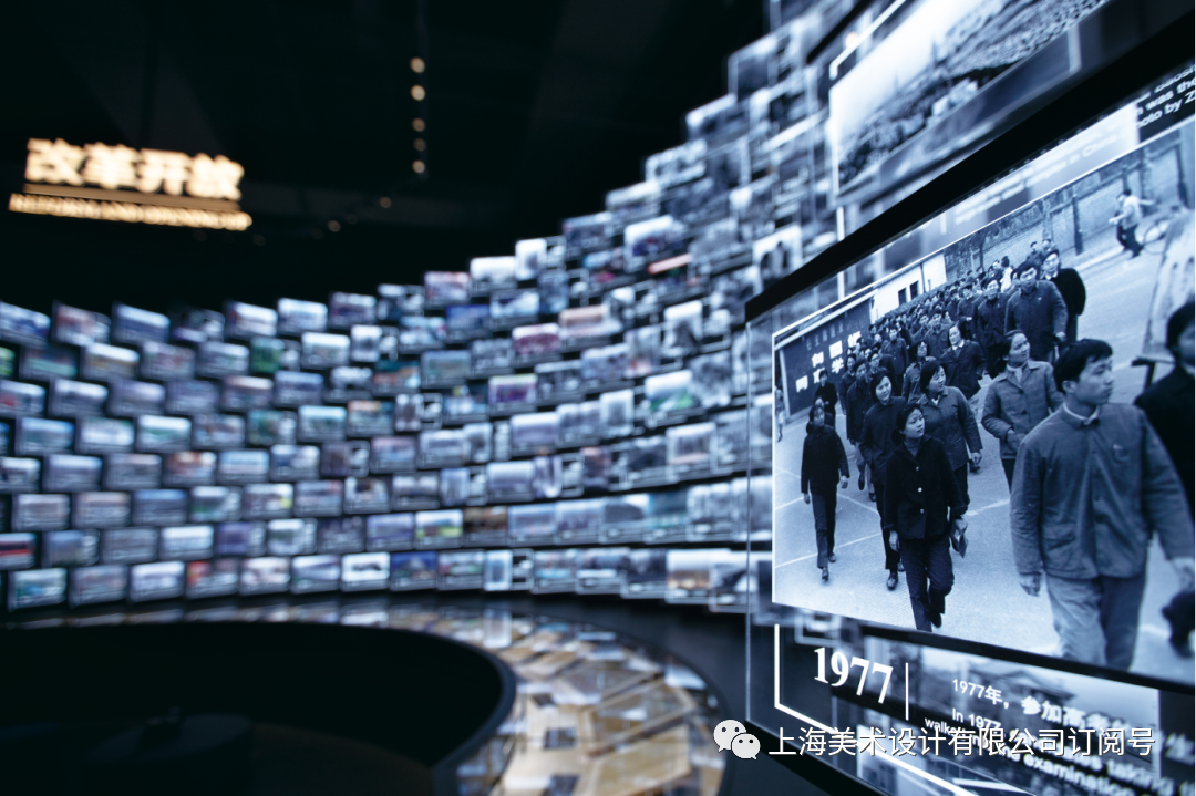 展览的空间设计上,采取了复合式空间结构,在满足空间叙事逻辑的前提下,将展厅视野放大,将不同时代的城市记忆交错呈现,体现城市的变迁。展厅内各时代区域空间设计运用鲜明的文化符号表达,增强空间体验感。