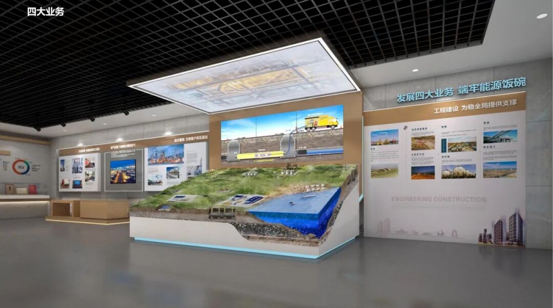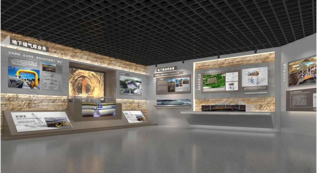 地下储气库业务展区岩层质感的创意展墙引领观众进入地下储库展区,剖面模型结合动画原理展示地下储库原理。