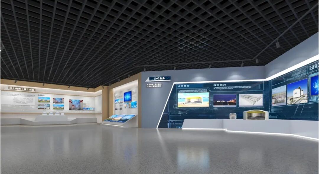 LNG业务展区贯彻整体设计风格,穿插科技蓝,体现现代科技产业特征。