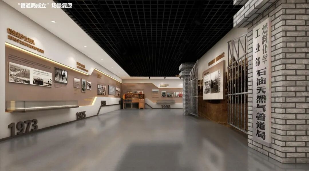 管道局成立以时间轴线的形式演化出一个时光长廊。同时配合实物文献等历史见证,突出管道局重要节点、重大事件。