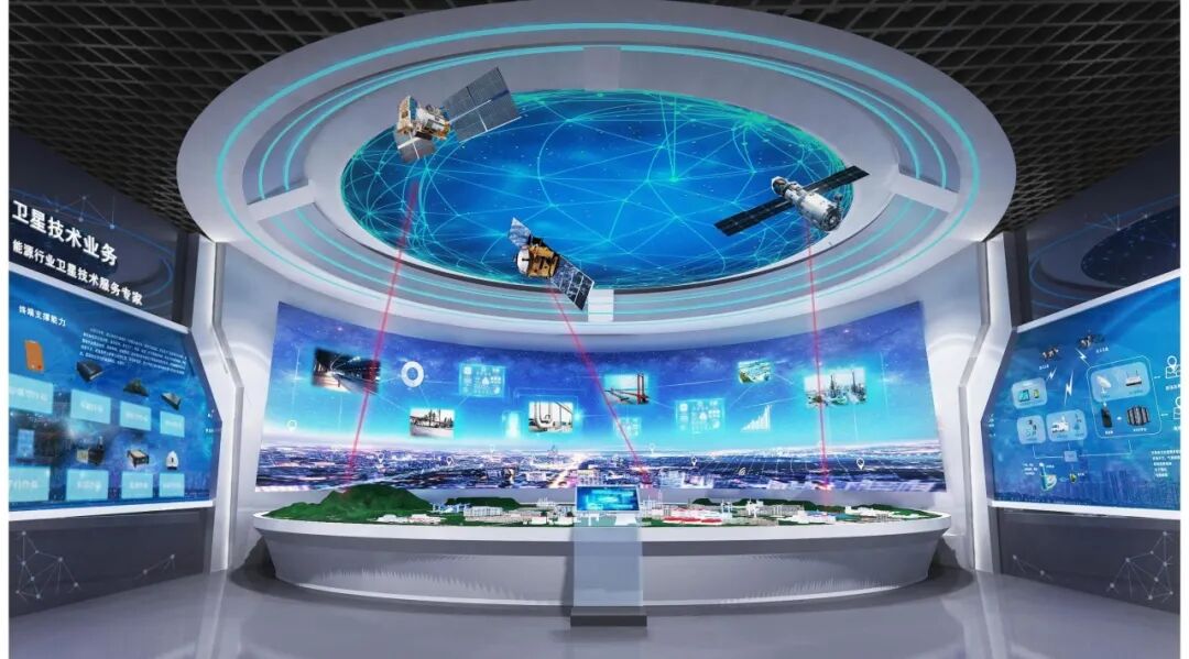 卫星技术业务展区卫星技术激光互动拟态沙盘,模拟北斗海陆空能源安全监管全流程服务。