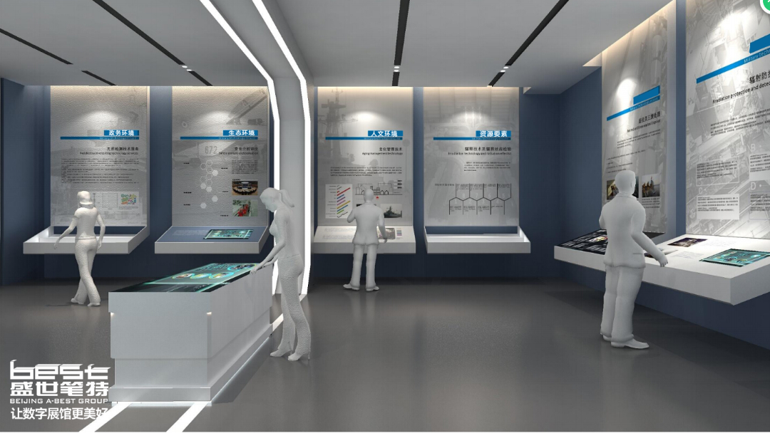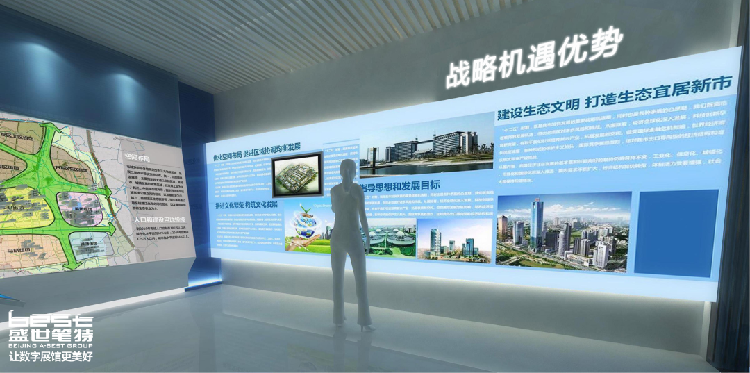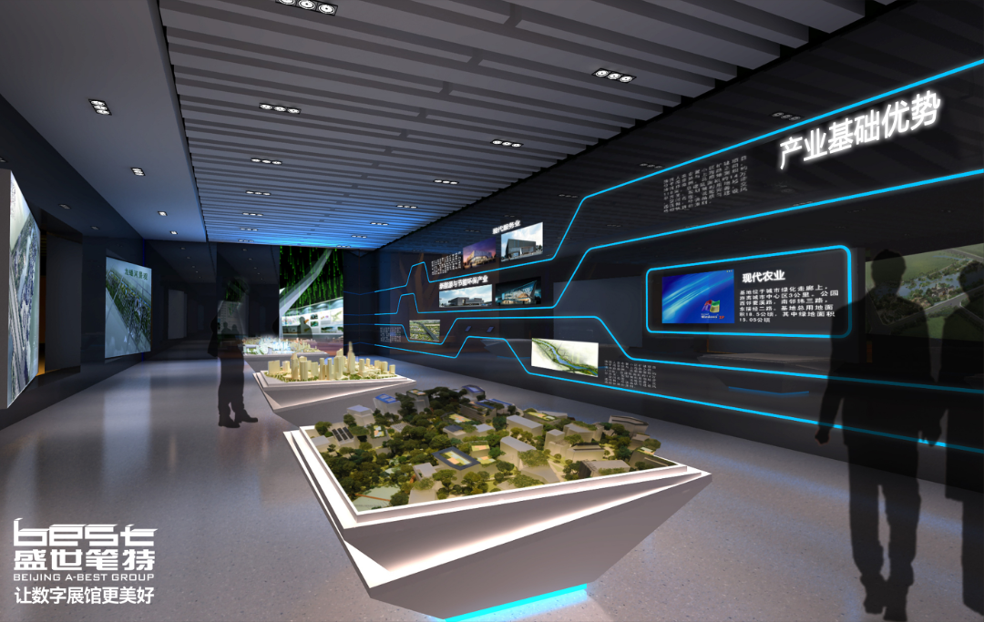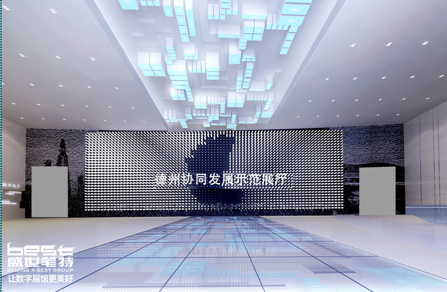 - 德州协同发展示范区展厅设计:科技感墙面+沙盘模型展示产业优势