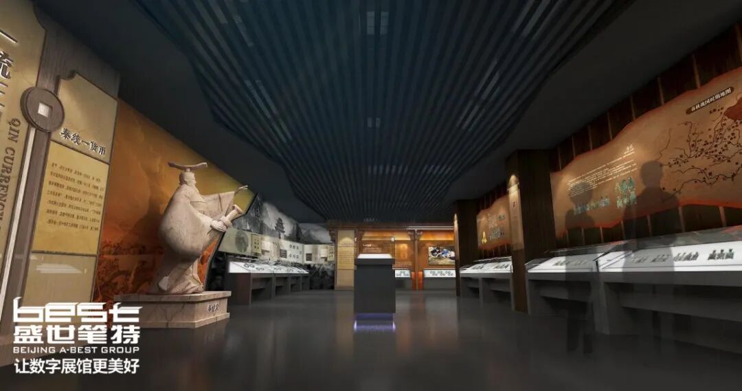 - 中国钱币博物馆设计效果图:竹简墙面+秦始皇雕塑再现货币历史