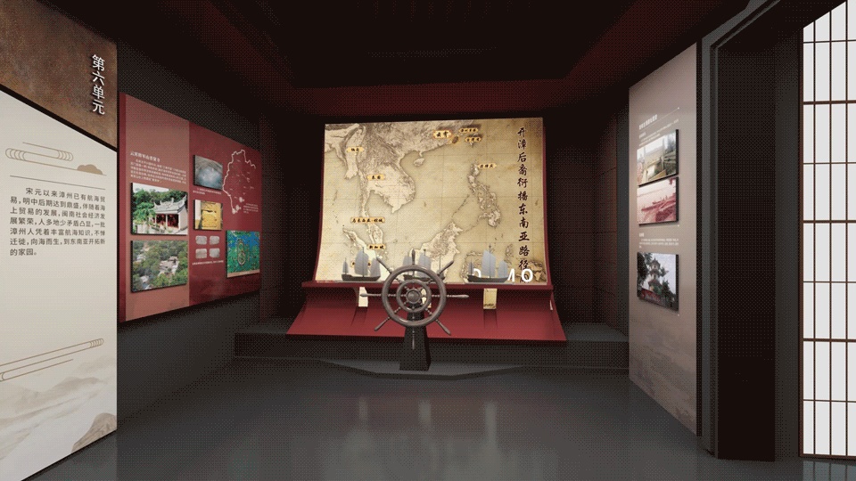 宋元以来漳州已有航海贸易,明中后期达到鼎盛,伴随着海上贸易的发展,闽南社会经济发展繁荣,人多地少矛盾凸显,一批漳州人凭着丰富航海知识,不惮迁徙,向海而生,到东南亚开拓新的家园。转动船舵,寻找历史中的航海路线。