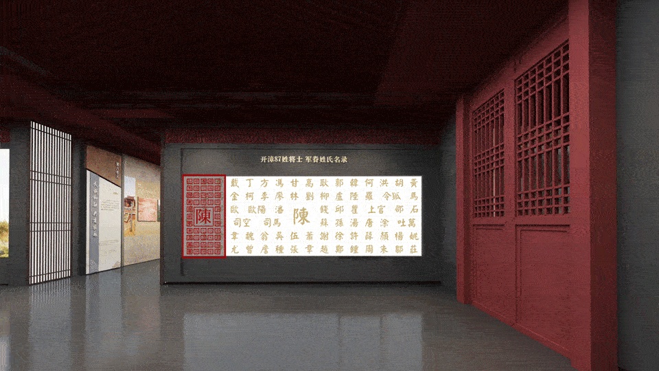 当 87 姓将士的脚步声与数字化设计相遇,一场科技与历史的碰撞就此展开。OLED 透明移动滑轨展示系统,清晰展示了唐初跟随陈政、陈元光父子入闽平乱,以及陈敏、陈敷、魏妈所率入闽驰援的 87 姓开漳府兵将士名录。每一个名字背后,都承载着一段英勇无畏的历史故事。