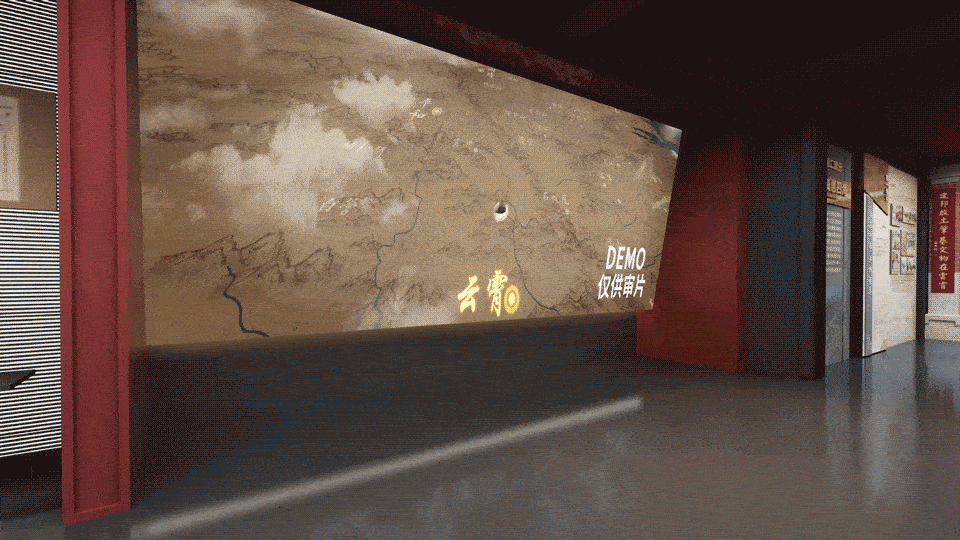 利用四折幕沉浸式展示系统打造沉浸式空间,展示明清及民国时期,漳州移民迁台活动掀起几次高潮,开漳圣王的开拓精神成为移民战胜困难,完成由南向北,由西向东拓垦并定居的精神支柱。