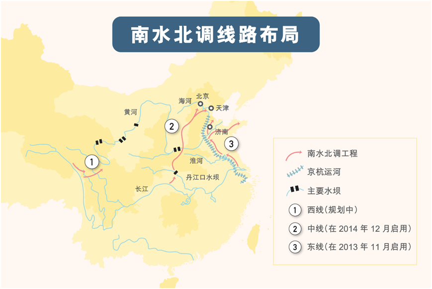 作为世界第一大引水工程的南水北调中线工程,是从长江最大支流汉江中上游的丹江口水库调水,经长江流域与淮河流域的分水岭方城垭口,沿华北平原中西部边缘开挖渠道,在荥阳通过隧道穿过黄河,沿京广铁路西侧北上,自流到北京市颐和园团城湖的输水工程。
